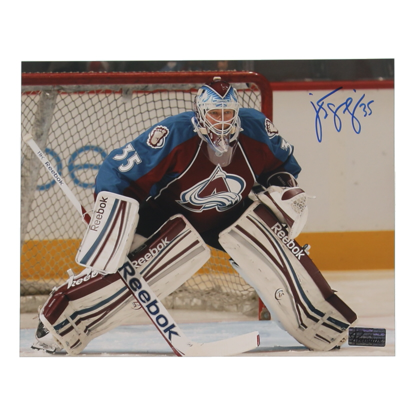 Photo measures 8" x 10" in size and has been hand signed by Jean-Sebastien Giguere (Colorado Avalanche).