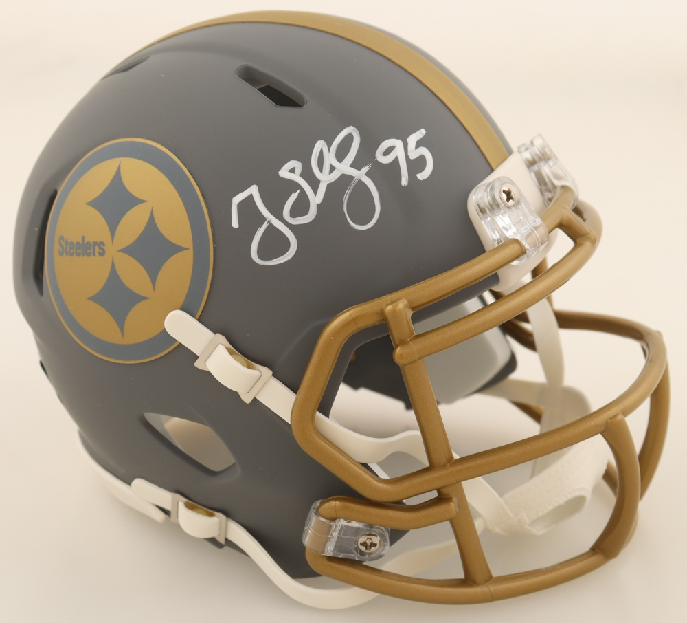 Riddell Pittsburgh Steelers Slate Alternate Speed mini helmet. Hand-signed by Greg Lloyd.