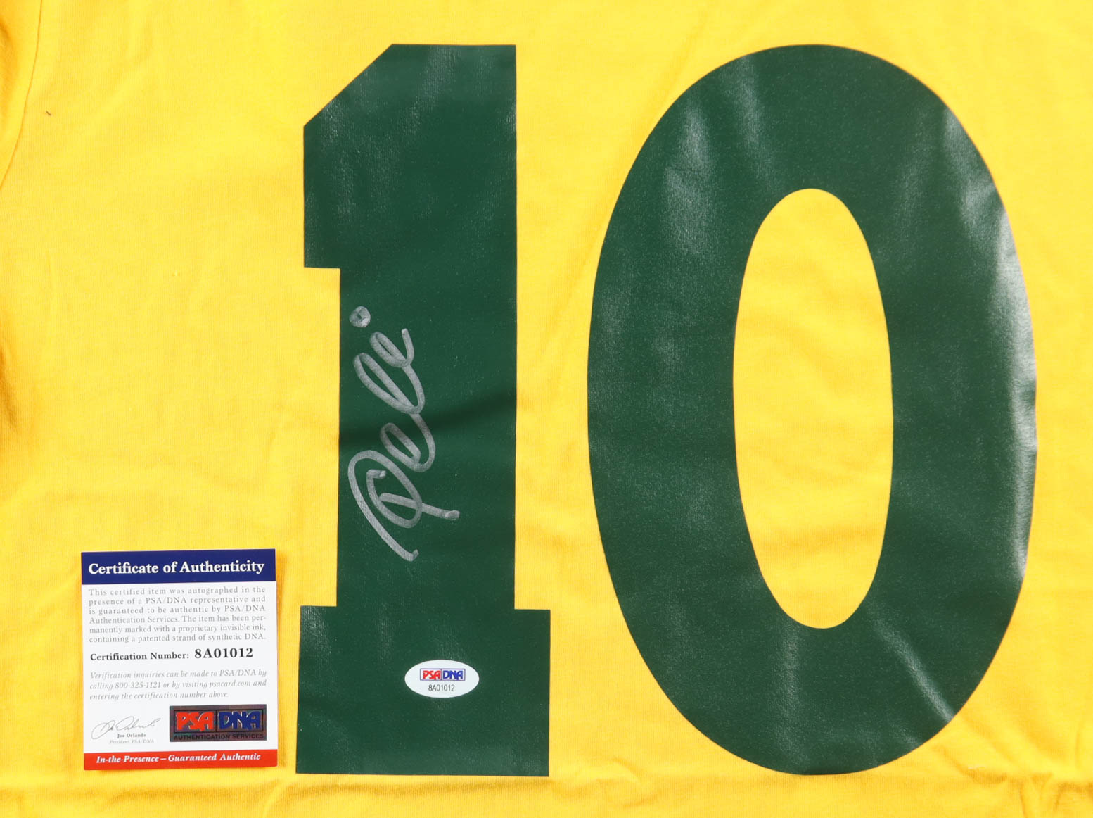 Custom jersey with everything printed on, size XL. Hand-signed by Pele (D. 2022, HOF).