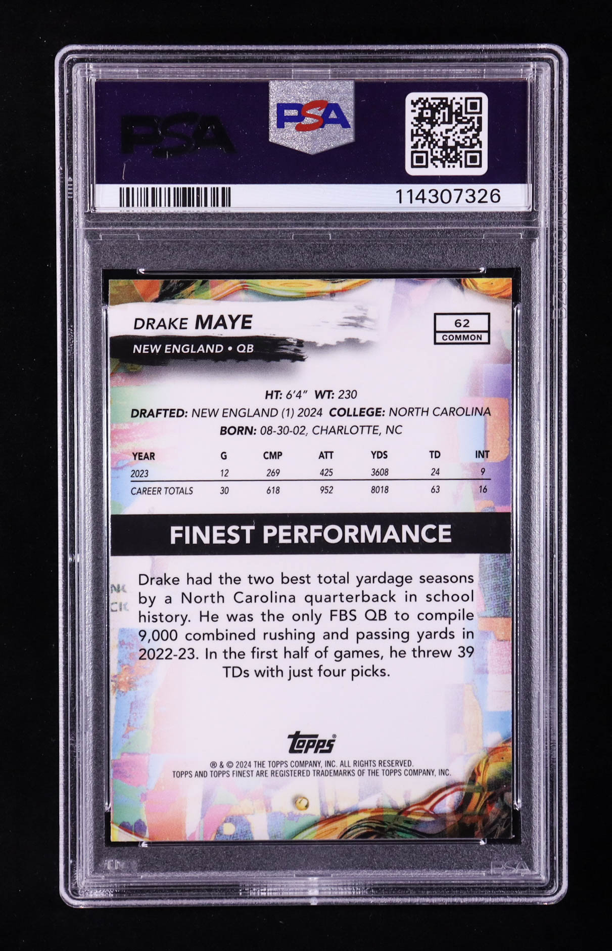 Drake Maye 2024 Finest #62 RC (PSA 9)