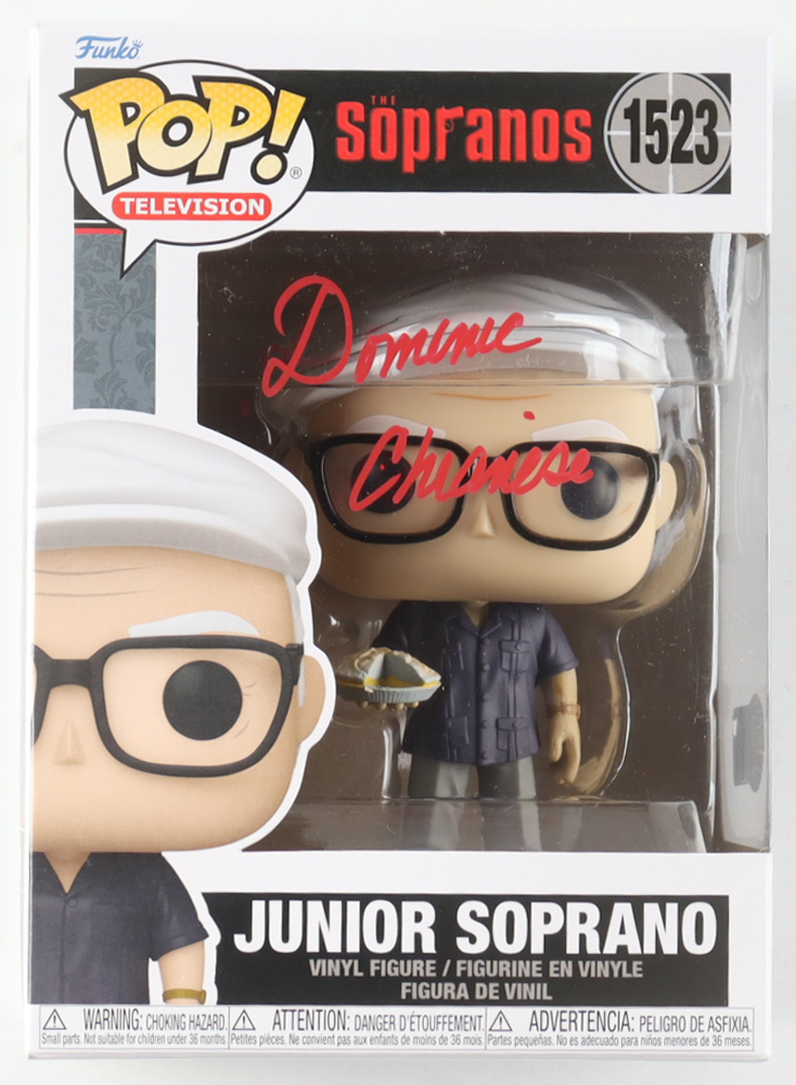 Funko Pop! vinyl figure measures approximately 4" tall and has been hand-signed on the packaging by Dominic Chianese.