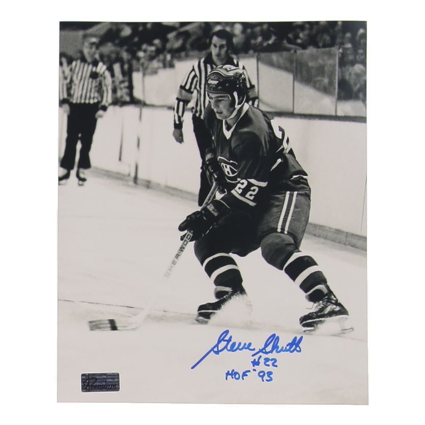 Photo measures 8" x 10" in size. Hand-signed and inscribed by Steve Shutt (Montreal Canadiens, HOF).