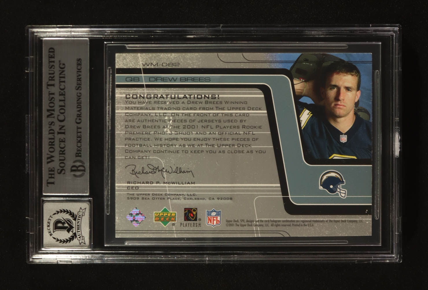 Drew Brees Signed 2001 SPx Winning Materials #WMDB3 #094/250 RC (Beckett | Auto Grade BGS 10)