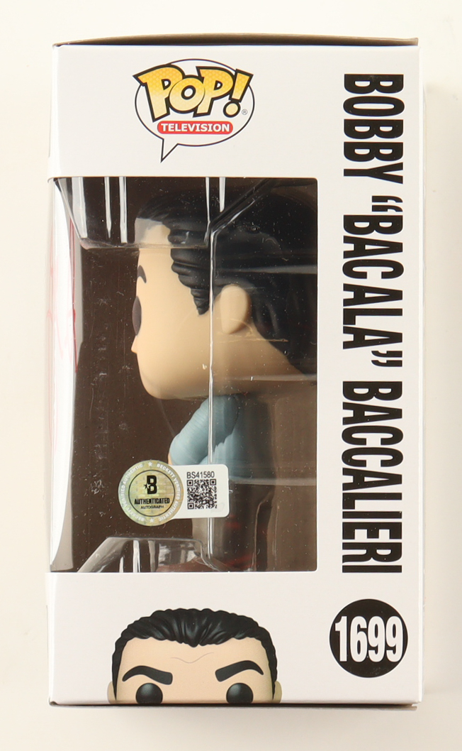 Funko pop! vinyl figure measures approximately 4" tall. Hand-signed on the packaging by Steve Schirripa (Bobby Bacalieri).