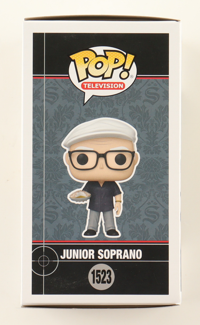 Funko Pop! vinyl figure measures approximately 4" tall and has been hand-signed on the packaging by Dominic Chianese (Junior Soprano).