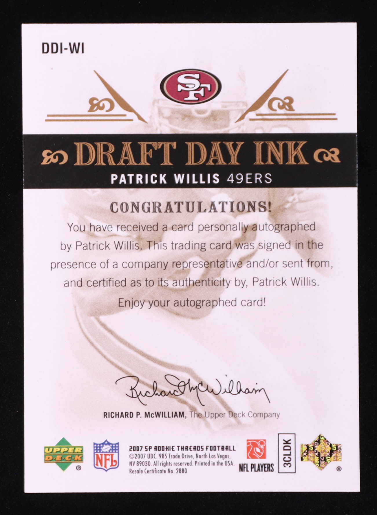 Patrick Willis 2007 SP Rookie Threads Draft Day Ink #DDIWI