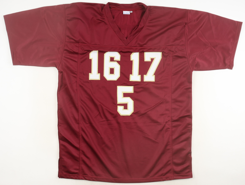 Custom jersey with everything sewn on, size XL. Hand-signed and inscribed by Jameis Winston, Chris Weinke, & Charlie Ward.
