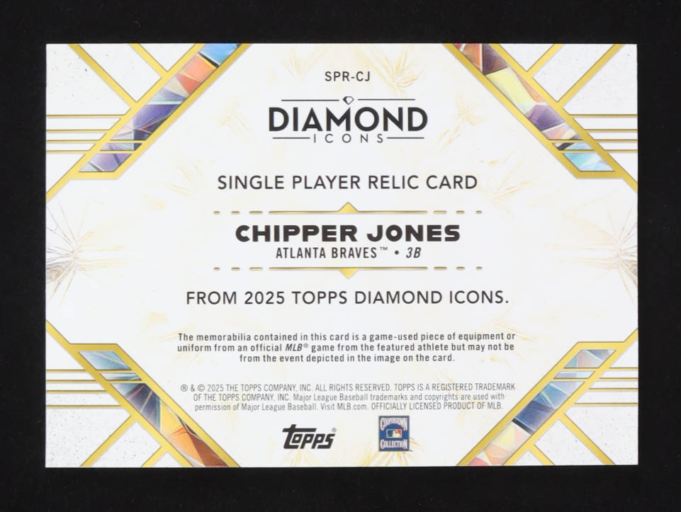 Chipper Jones 2025 Topps Diamond Icons Single Player Game-Used Relic Patch Auto #SPR-CJ #04/10