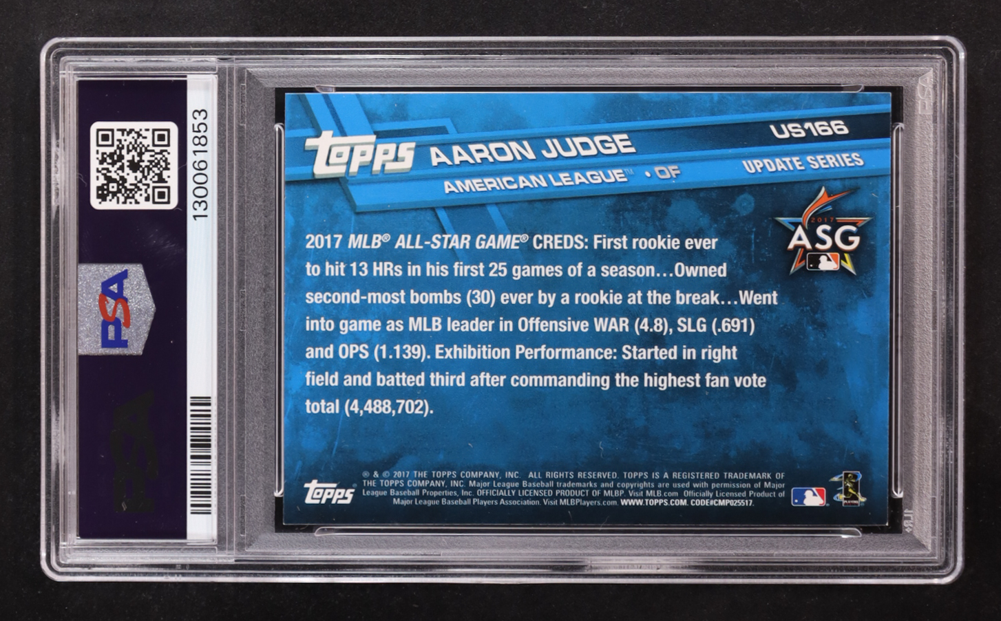 Aaron Judge 2017 Topps Update #US166A AS RC (PSA 9)