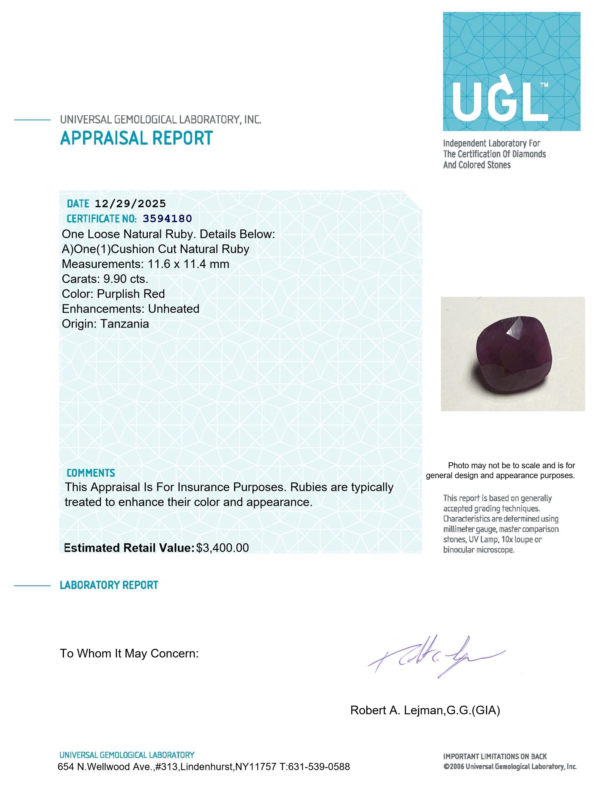 9.90 Carats Natural Ruby Loose | $3,400 Estimated Retail Value (UGL & IGI Certs)