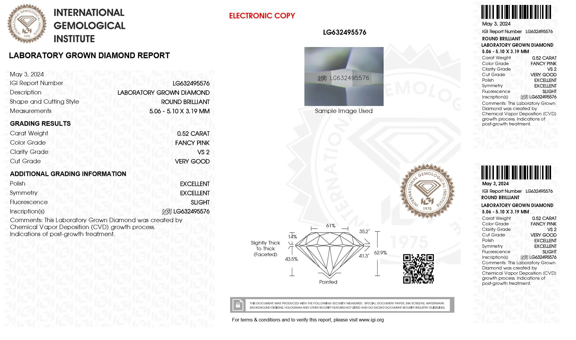 .52 Carats Lab Grown Pink Diamond Loose VS2 | (IGI Cert)