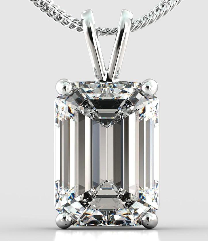 One New Emerald Cut Diamond Solitaire Pendant. Mounting is Made of Sterling Silver.