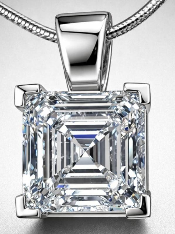 One New Asscher Cut Diamond Solitaire Pendant. Mounting is Made of Sterling Silver.