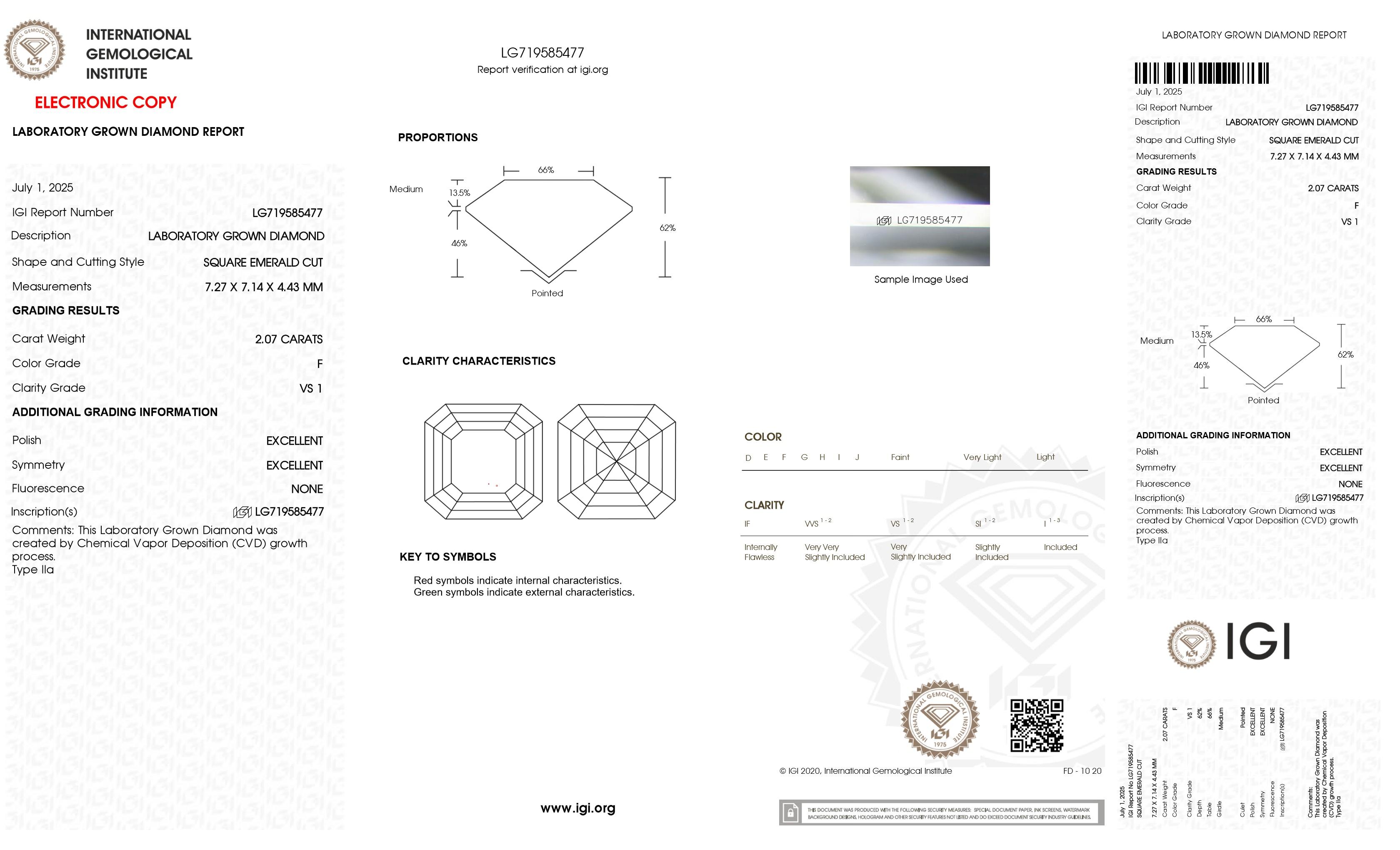 One (1) Asscher Cut Laboratory Grown Diamond