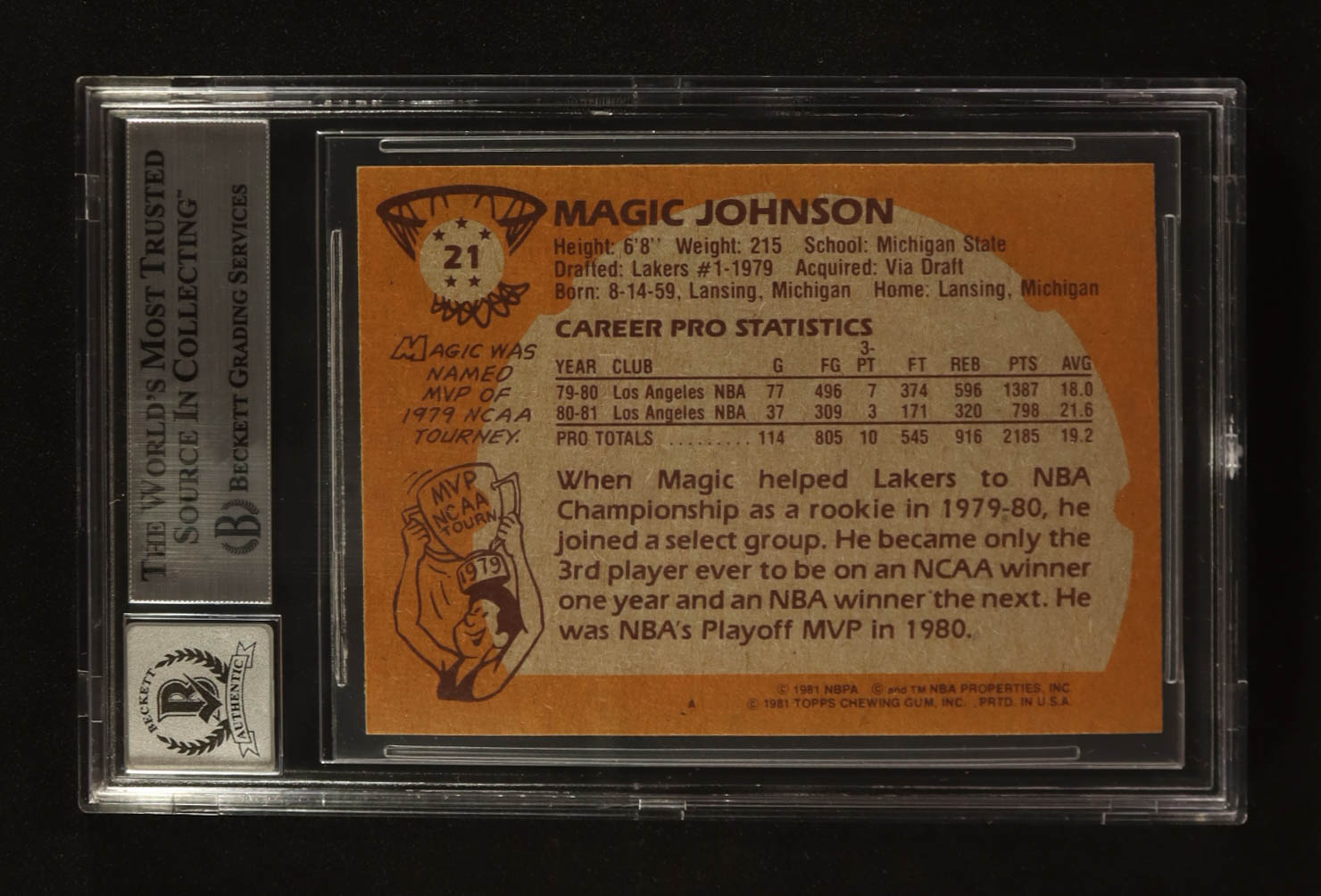 Magic Johnson Signed 1981-82 Topps #21 (Beckett | Auto Grade BGS 10)