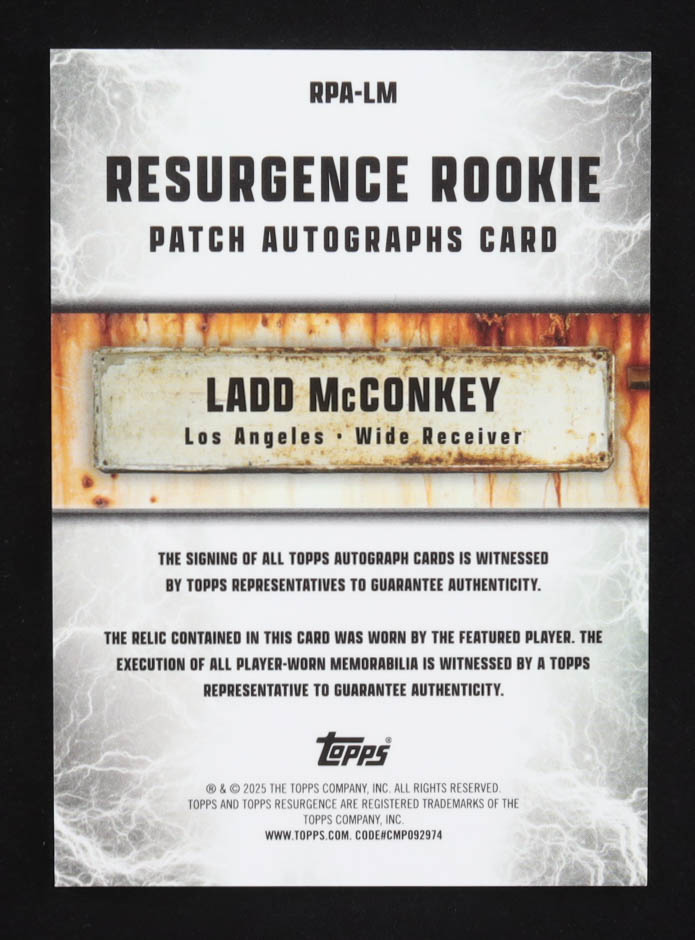 Ladd McConkey 2024 Topps Resurgence Resurgence Rookie Patch Autographs #RPALM RC