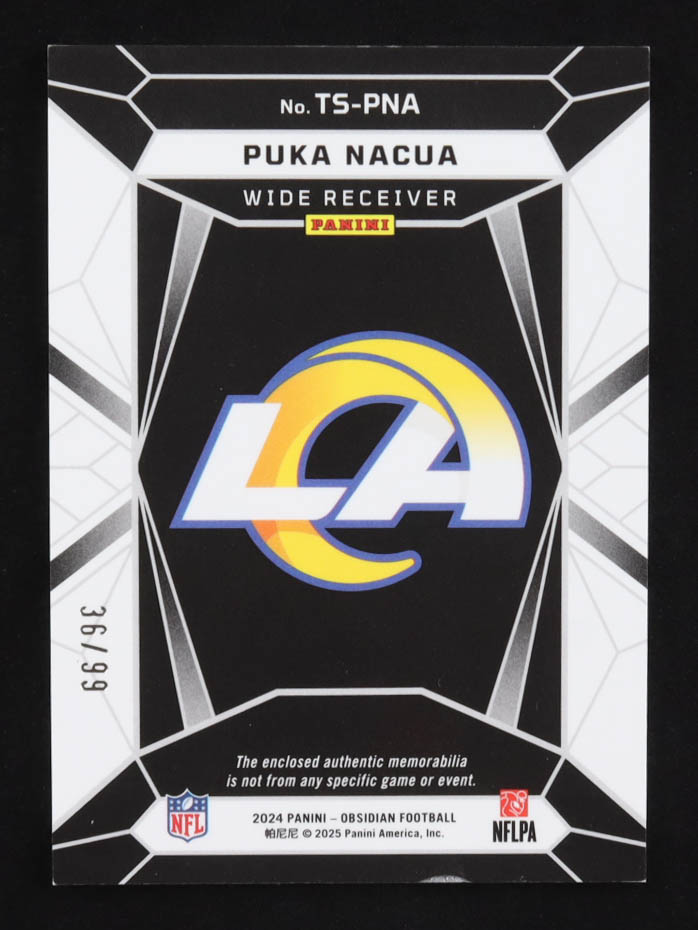 Puka Nacua 2024 Panini Obsidian Trifecta Swatches Silver #34 #36/99