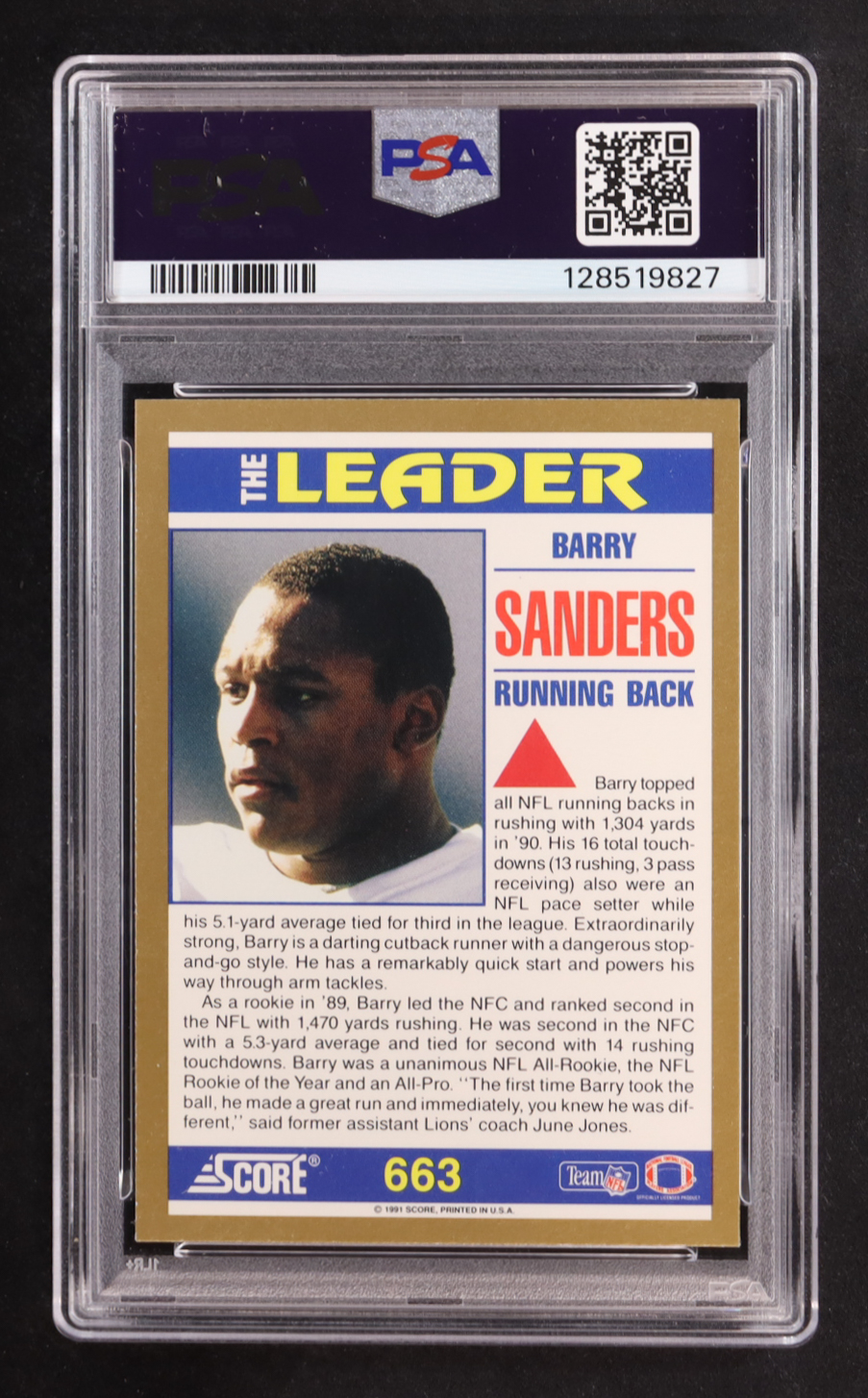 Barry Sanders 1991 Score #663 TL (PSA 9)