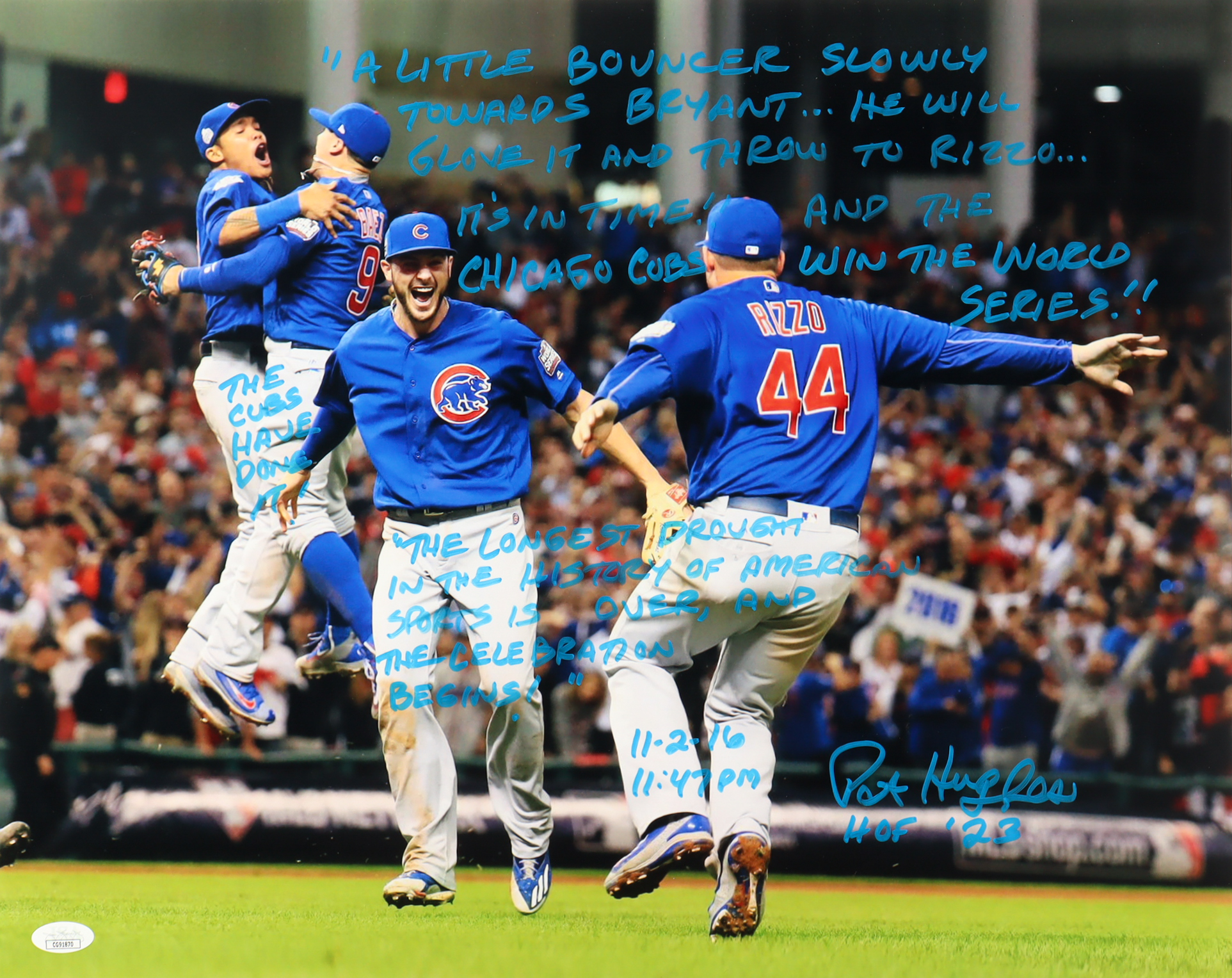 Pat Hughes Signed Cubs 16x20 Photo with Extensive Inscription (JSA)