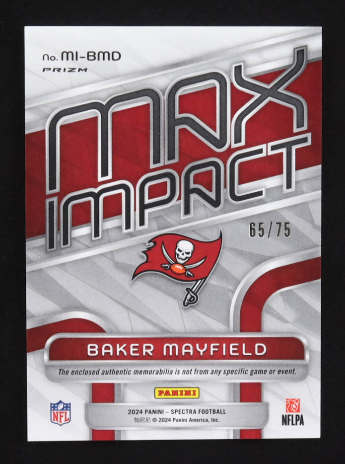 Baker Mayfield 2024 Panini Spectra Max Impact Materials Hyper #6 #65/75