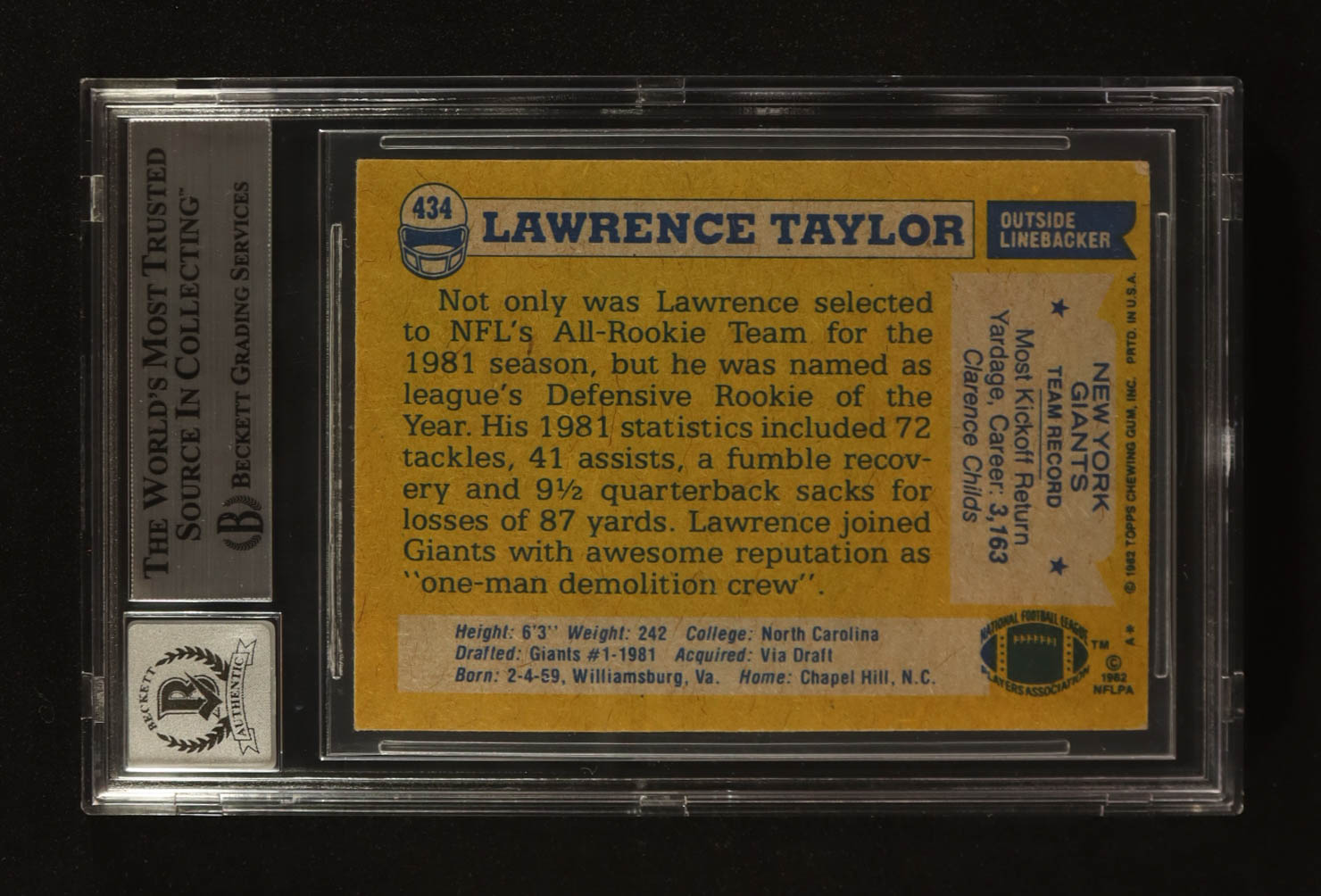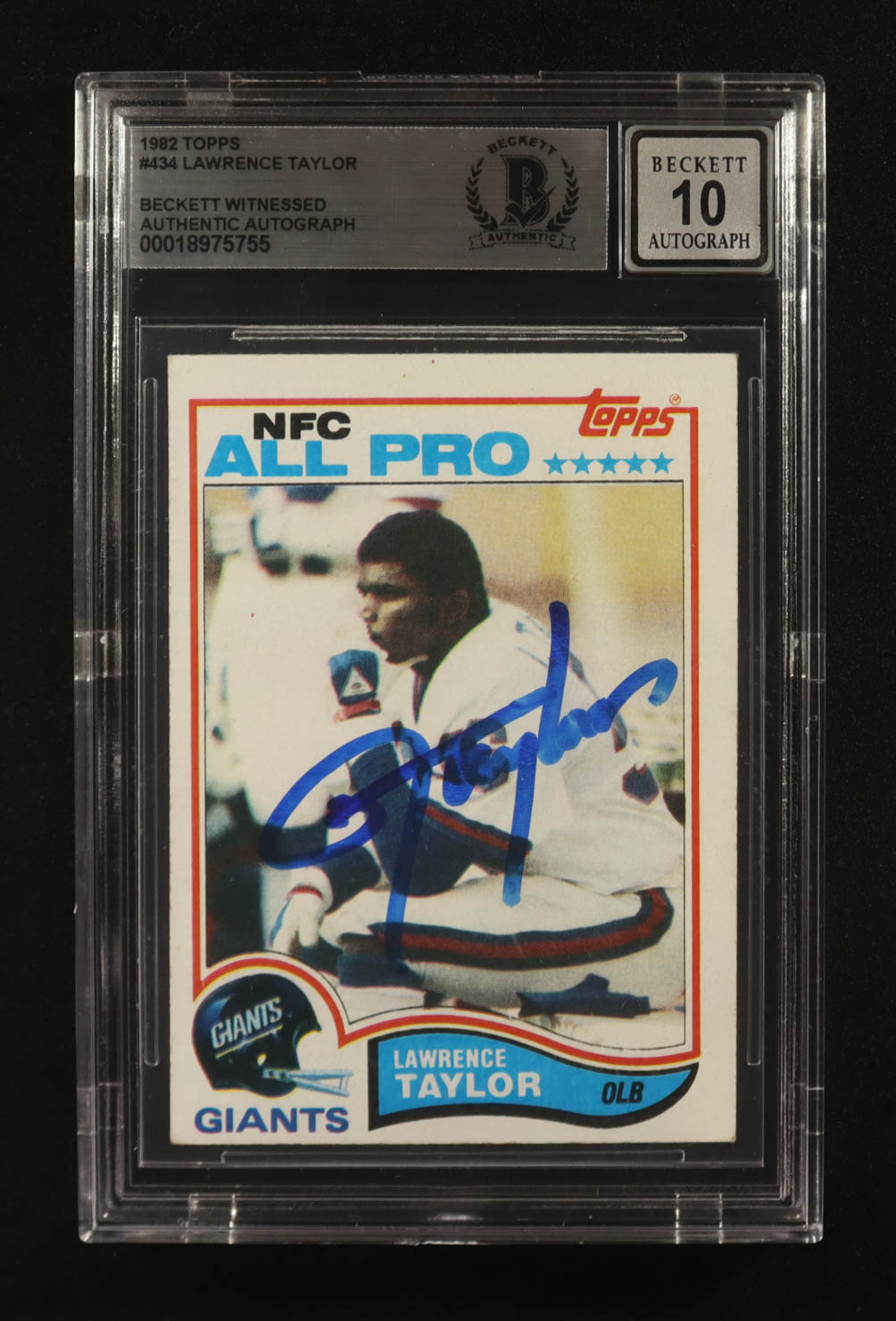 Lawrence Taylor Signed 1982 Topps #434 RC (Beckett | Auto Grade BGS 10)