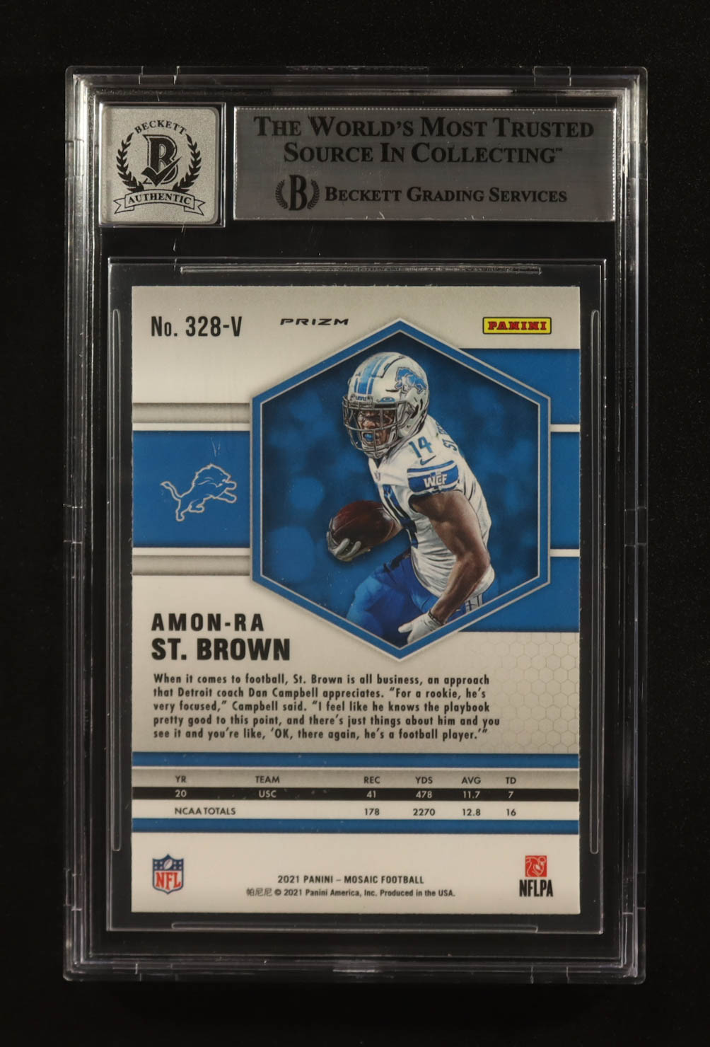 Amon-Ra St. Brown Signed 2021 Panini Mosaic Rookie Variations Silver #328 RC (Beckett | Auto Grade BGS 10)