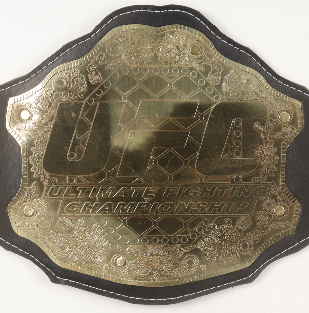 UFC Championship replica belt measures approximately 48" inches in length. Hand-signed by Chuck Liddell (HOF).