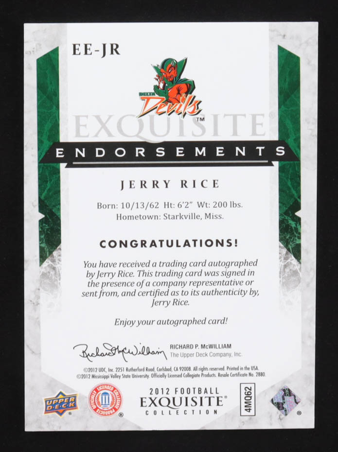 Jerry Rice 2012 Exquisite Collection Endorsements #EEJR #52/75