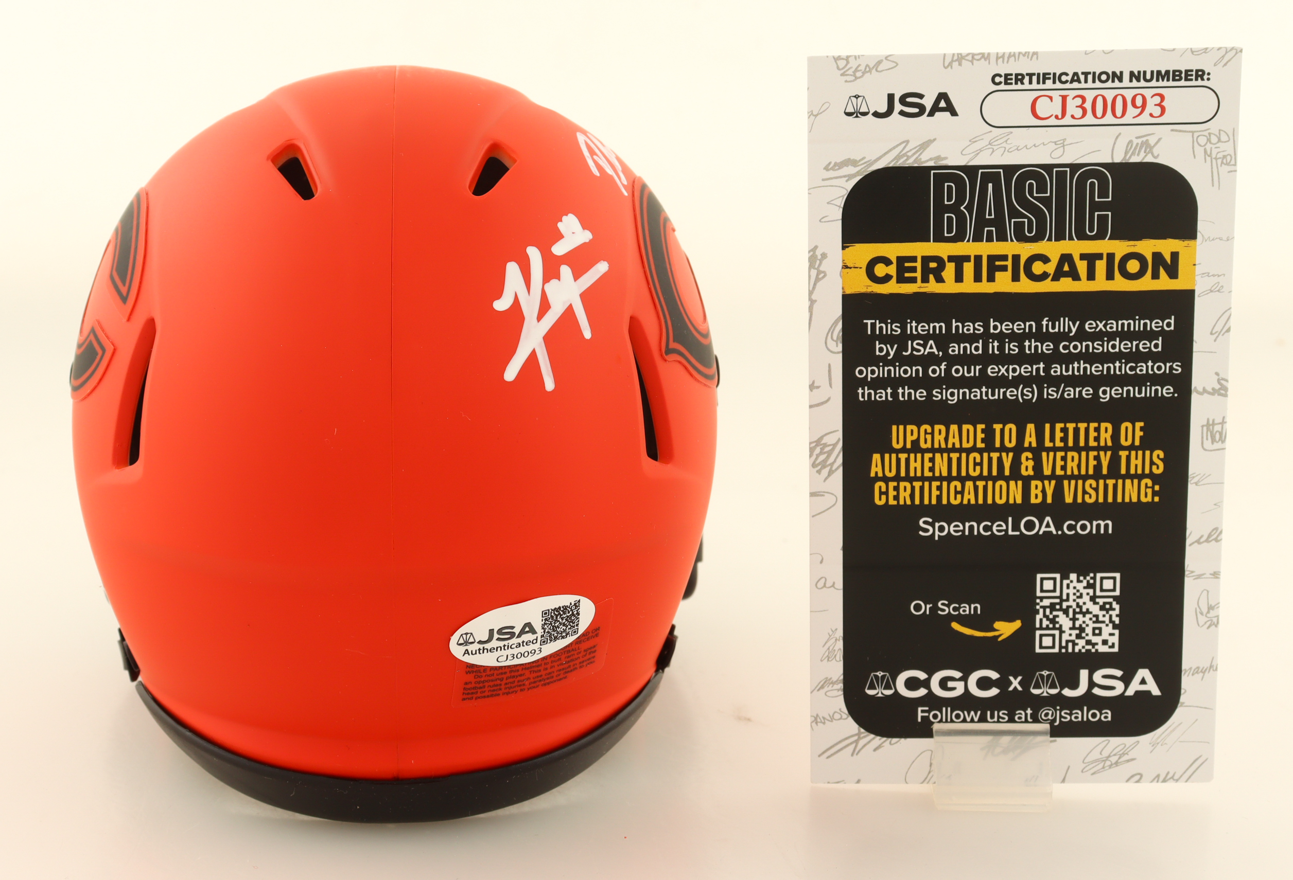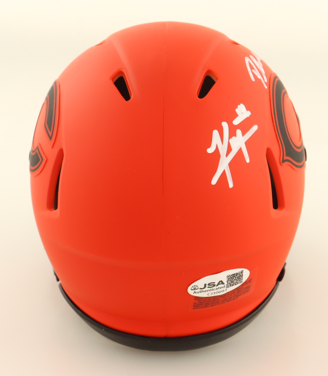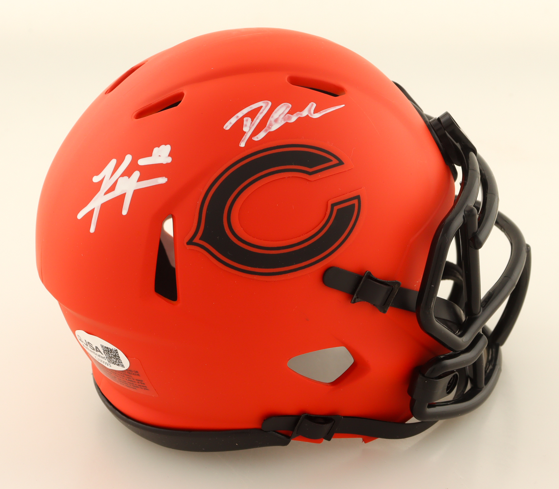 Riddell Chicago Bears Rave Alternate Speed Mini Helmet. Hand-signed by Kyle Monangai and D'Andre Swift.