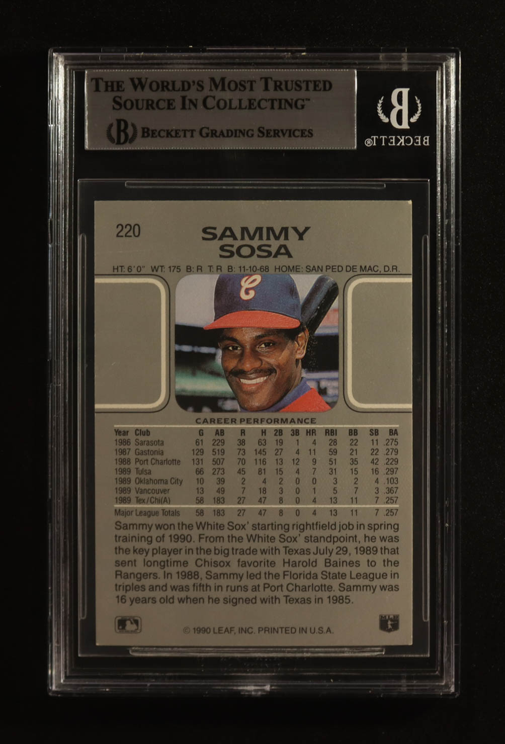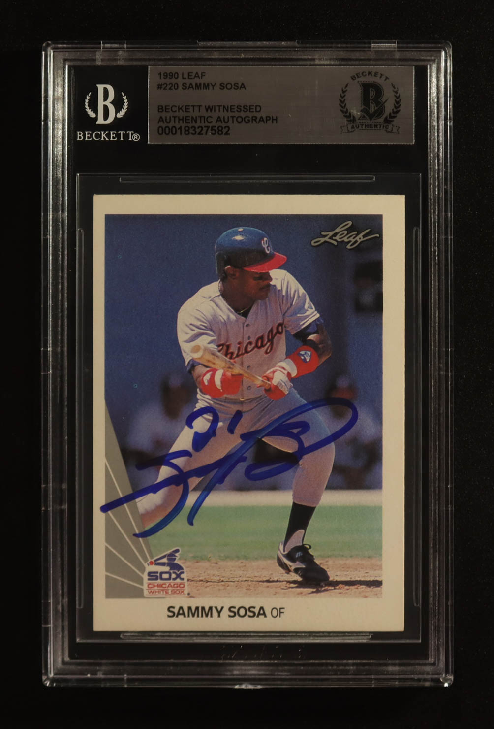 Sammy Sosa Signed 1990 Leaf #220 RC (Becket)
