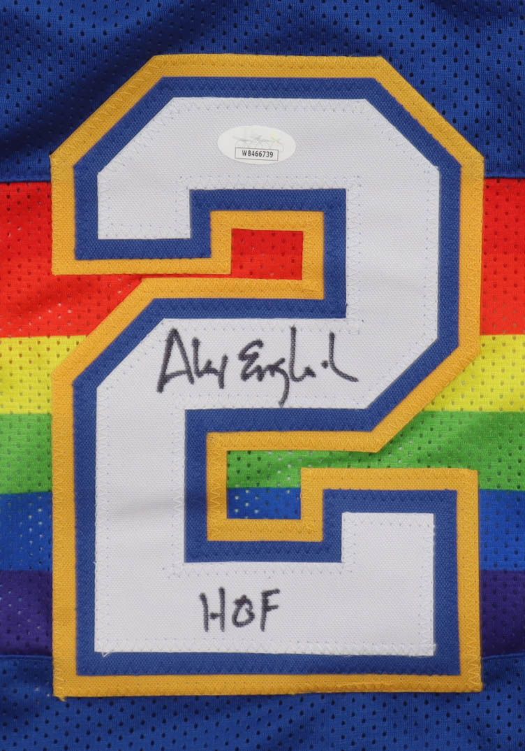 Custom jersey with everything sewn on, size XL. Hand-signed and inscribed by Alex English (Denver Nuggets).