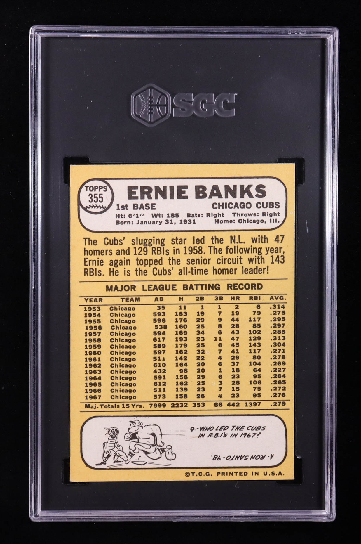 Ernie Banks 1968 Topps #355 (SGC 5)