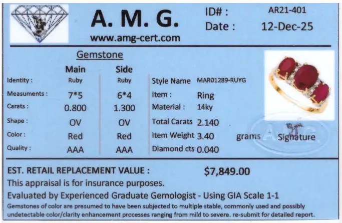 The Item includes certification From AMG.