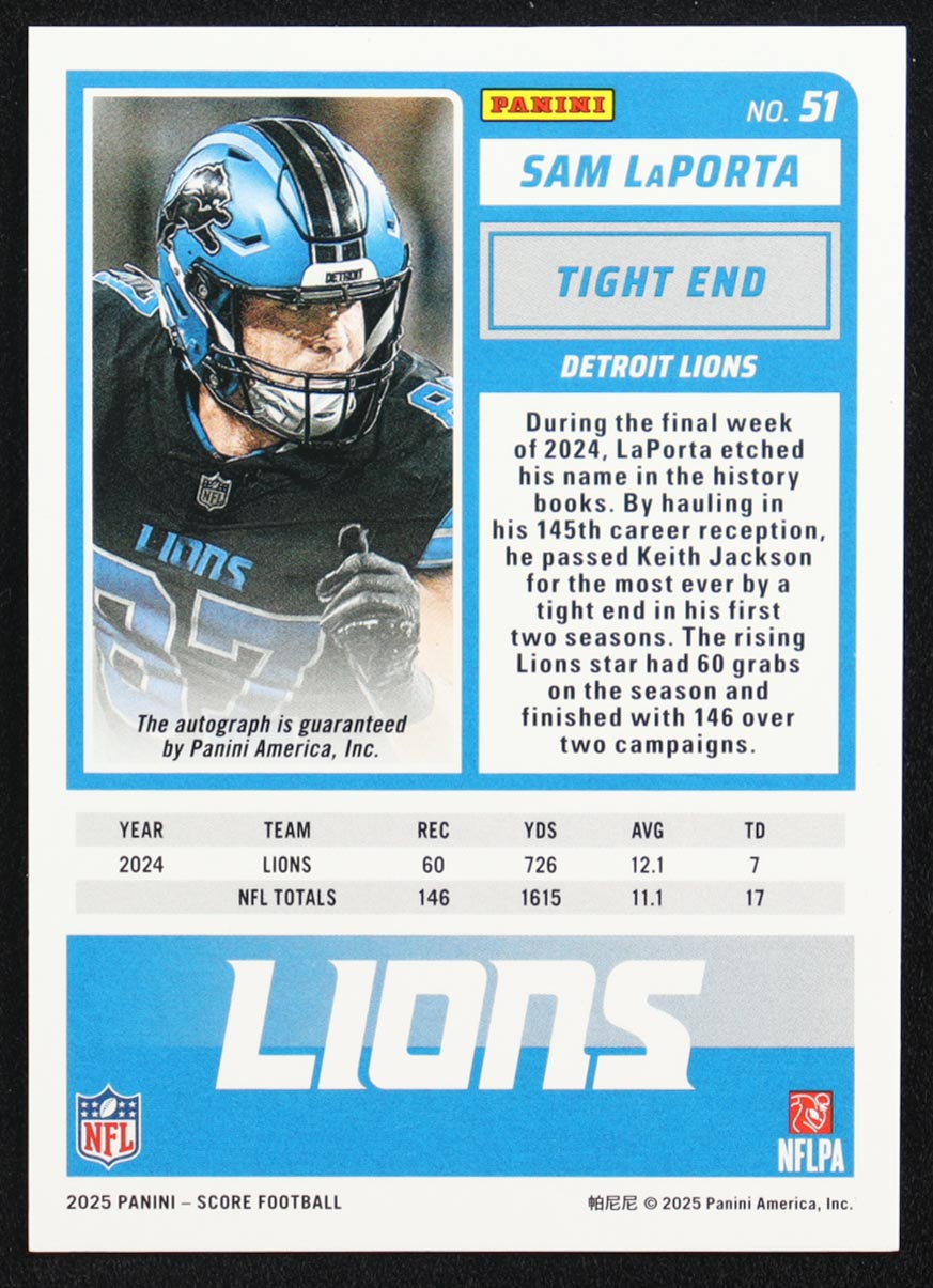 Sam LaPorta 2025 Score Signatures Red Zone #51 #8/20