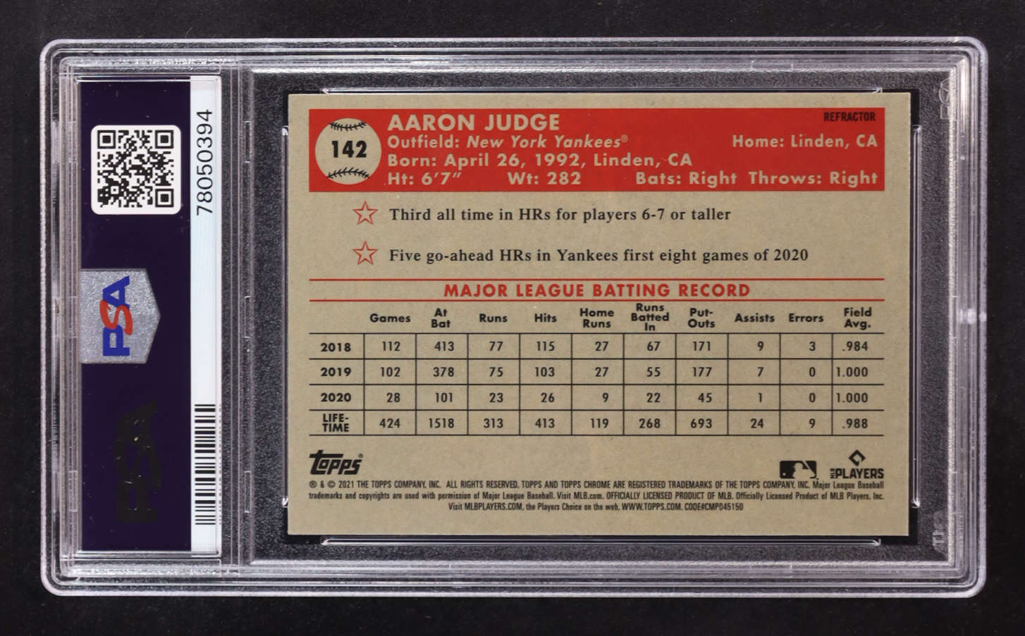 Aaron Judge 2021 Topps Chrome Platinum Anniversary Refractors #142 (PSA 9)