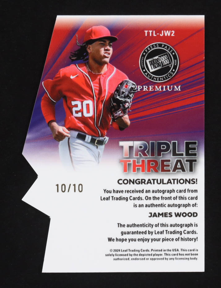 James Wood 2024 Leaf Press Pass Premium Triple Threat Die-Cut Auto #TTL-JW2 RC #10/10