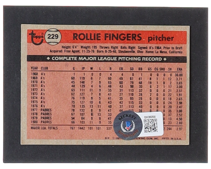 Rollie Fingers Signed 1981 Topps #229 (Beckett)