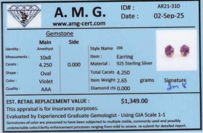 4.25 CTW Natural Amethyst 18K Gold Plated Designer Earrings | Estimated Value $1,349 (AMG)
