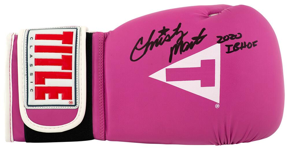 Title boxing glove has been hand-signed and inscribed by Christy Martin.