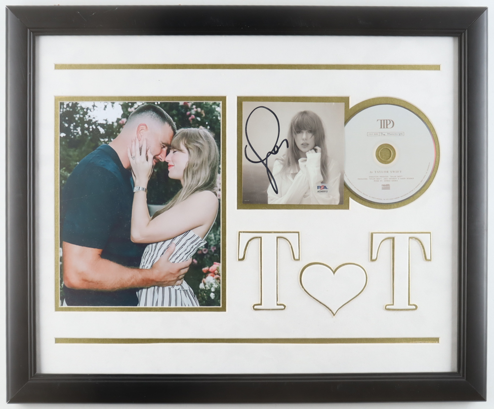 Custom frame measures approximately 20" x 22.5" in size. Features a "The Torture Poets Department" CD insert that has been hand-signed by Taylor Swift. The display includes the disc as shown. Please note, there is some scuffing on the frame.