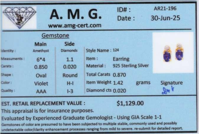 0.87 CTW Natural Amethyst & Diamond 18K Gold Plated Designer Earrings | Estimated Retail Value: $1,129 (AMG)