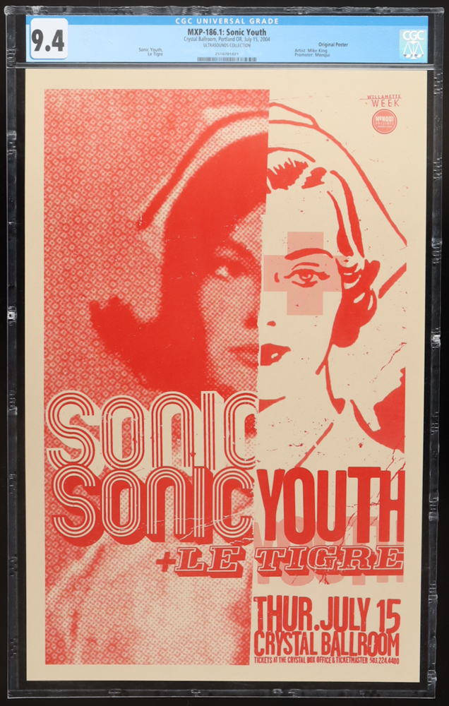 July 15, 2004 Sonic Youth concert poster has been graded CGC 9.4. Please note, the poser is unsigned, see photos for more details..