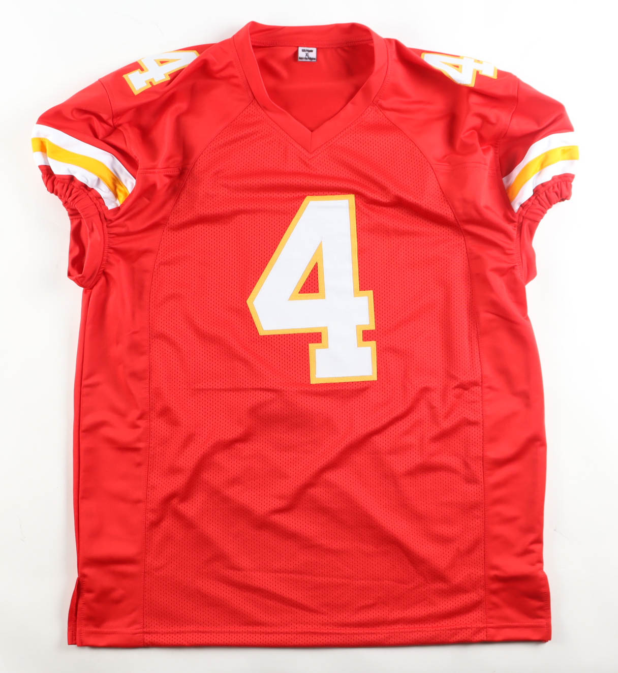 Custom jersey with everything sewn on, size XL. Hand-signed by Rashee Rice.