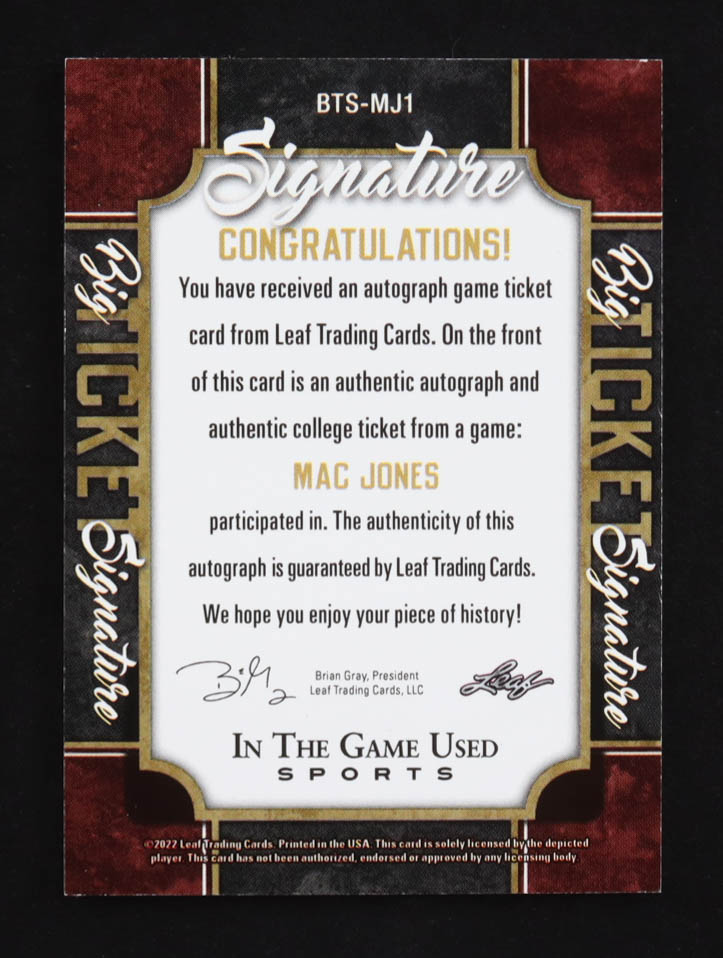 Mac Jones 2022 ITG Big Ticket Signatures Game Ticket Auto #BTS-MJ1