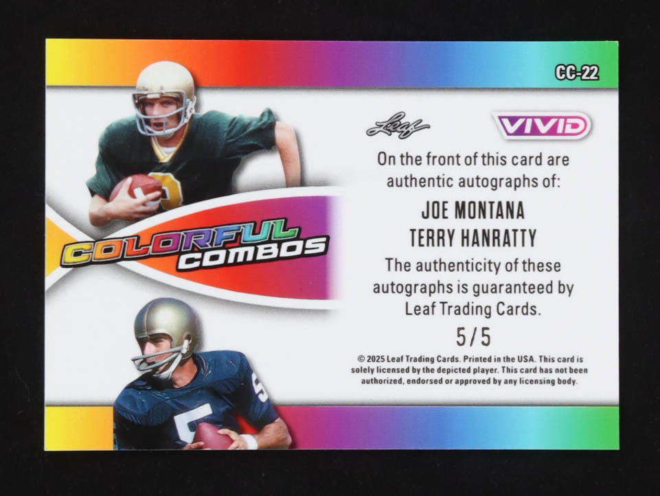 Joe Montana / Terry Hanratty 2025 Leaf Vivid Colorful Combos Lazer Autographs #CC-22 #5/5