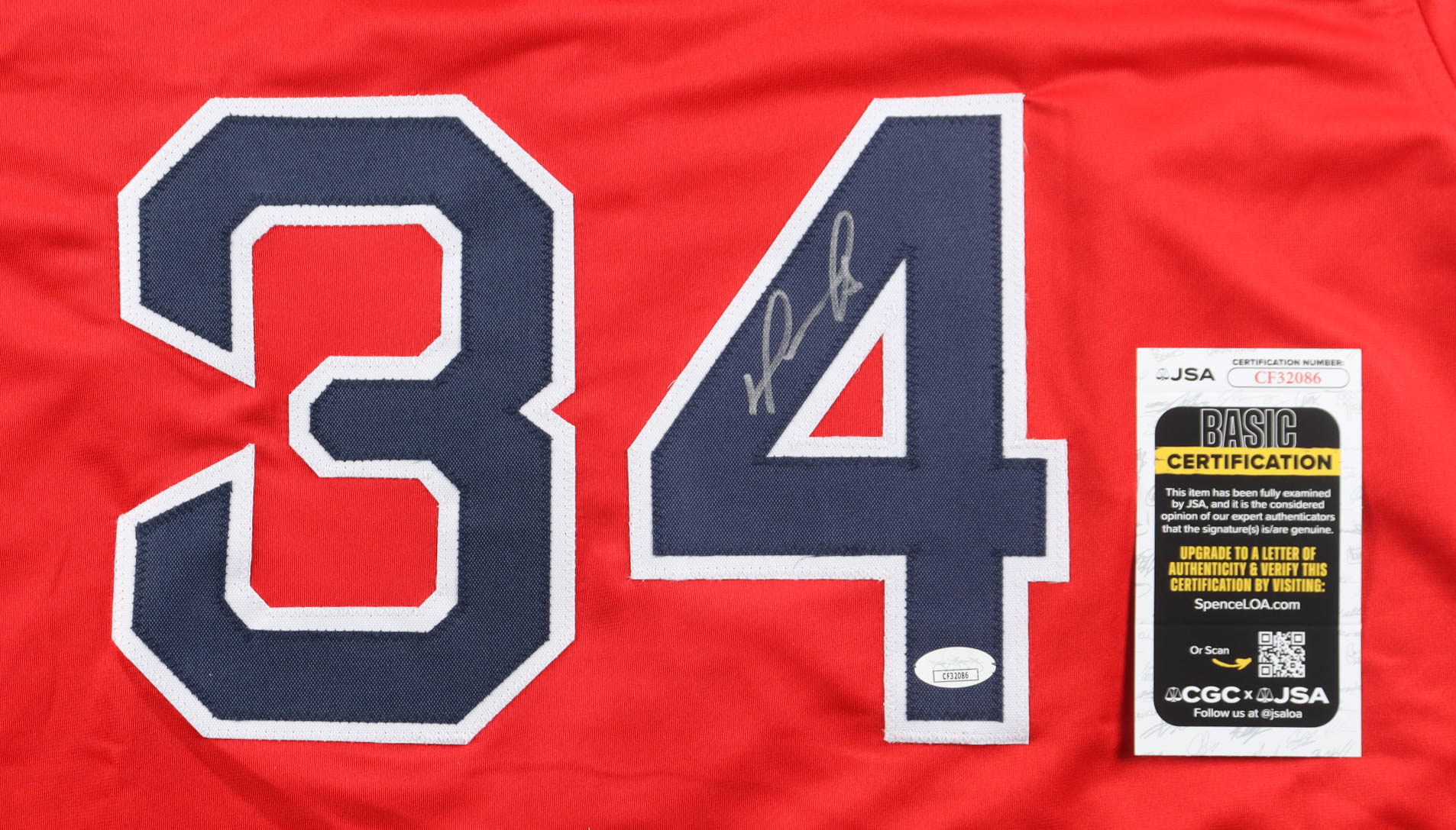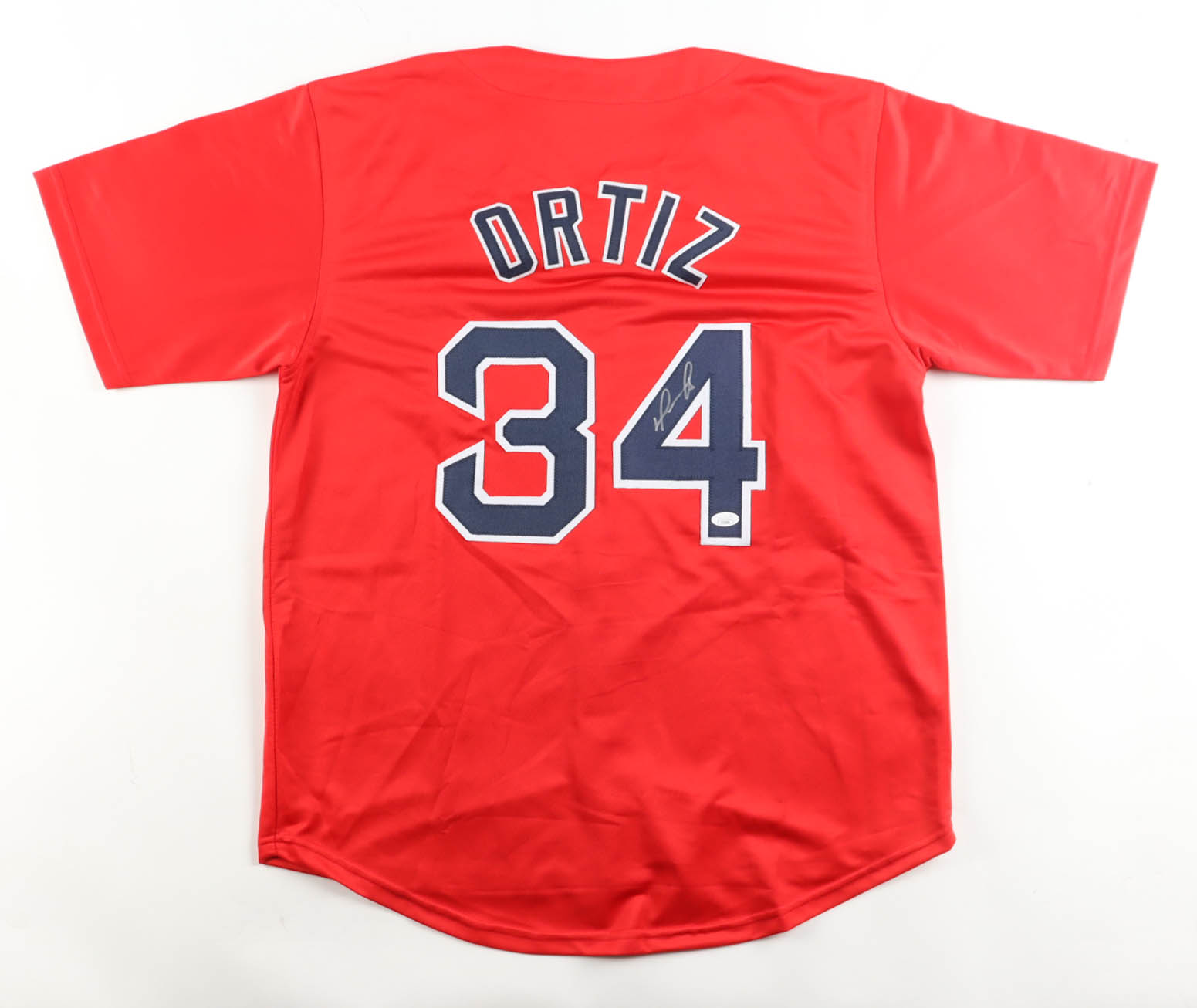 Custom jersey with everything sewn on, size XL. Hand-signed by David Ortiz (HOF).