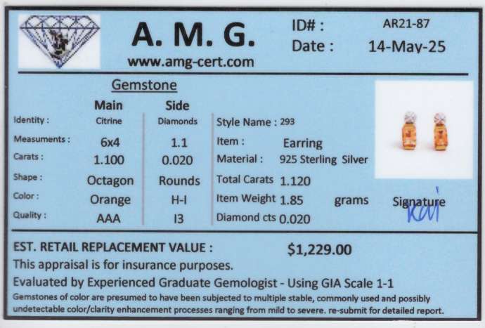 1.12 CTW Natural Citrine And Diamonds 18K Gold Plated Designer Earrings H-I, I3 | Estimated Value $1,229 (AMG)