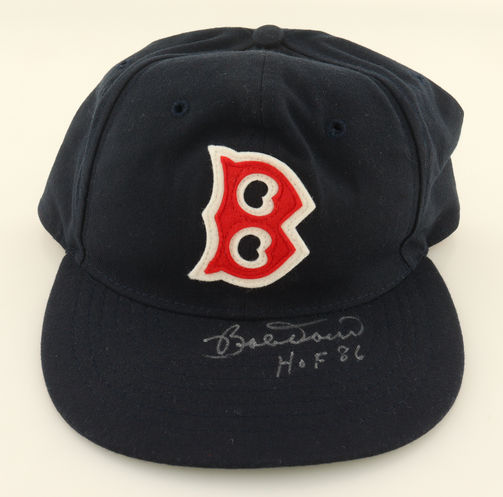 Boston Red Sox Roman Pro fitted hat, size 7 1/4. Hand-signed and inscribed by Bobby Doerr (D. 2017, HOF).