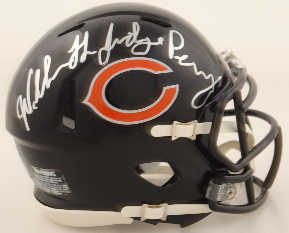Riddell Chicago Bears speed mini helmet has been hand-signed and inscribed by William Perry.