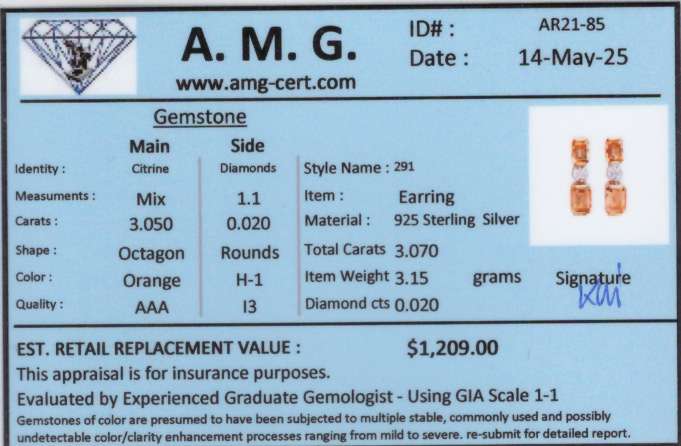 3.07 CTW Natural Citrine & Diamonds 18K Gold Plated Designer Earrings H-1, I3 | Estimated Value $1,209 (AMG)